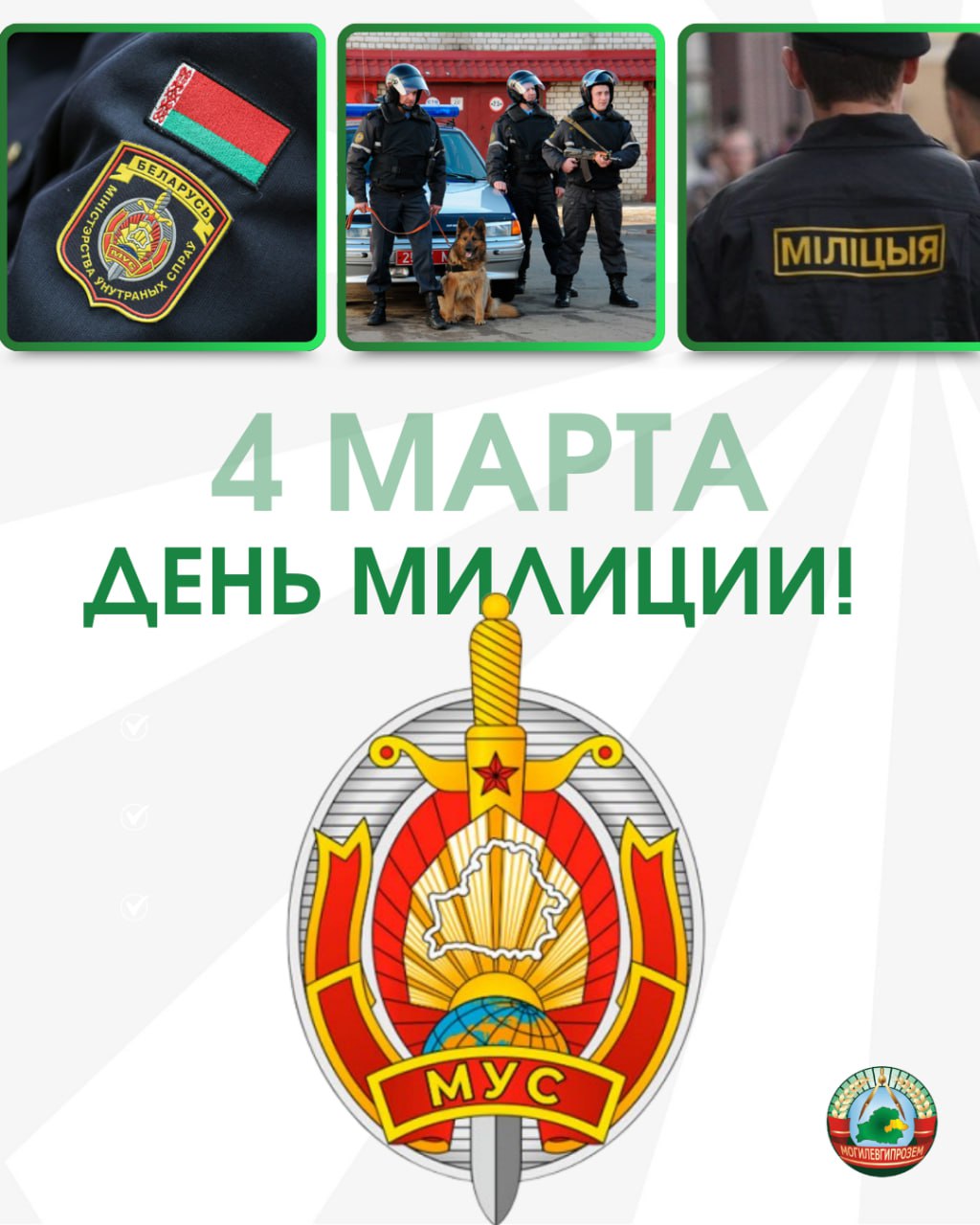 Примите самые искренние поздравления с профессиональным праздником – Днем милиции! Каждый день и час вы стоите на страже закона, защищаете жизнь наших граждан. Проявляя высокий профессионализм и принципиальность в борьбе с преступностью, обеспечиваете сохранение общественного порядка на улицах нашего города.…
